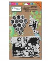 - Stamp different pieces of burlap paper from DCWV with the following stamps and StazON Inks